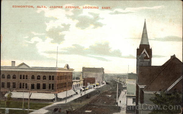 Front: EDMONTON, ALTA, JASPER AVENUE, LOOKING EAST. DOWE BOR II !!! Back: Illustrated Post Card Co., Montreal. THIS SPACE MAY BE USED FOR CORRESPONDENCE. 1c. CANADA AND 2c. FOREIGN. THIS SPACE IS FOR ADDRESS ONLY.