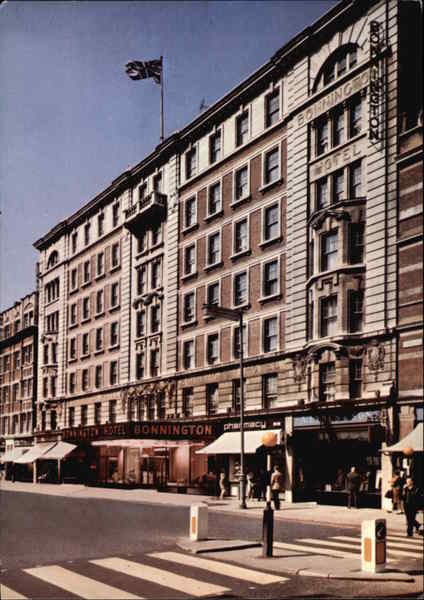 Front: TI 33 OL BONNINGTON HOTEL BONNINGTON pharmacy BONNINGTON EFE FALYNES & SO Back: The Bonnington Hotel, Southampton Row, London, W.C.1. 270 bedrooms. Telephone 01-242 2828. Telex 261591 Gt. Britain