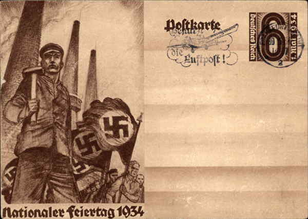 Front: 5565 nationaler feiertag 1934 Doftkarte die Tor Luftpoft! 16 FURT Ve 6 & wom'tL Back: up tial $f ji yung aufm mpju ve 22 lige huruf an fuf میر کرنا hife