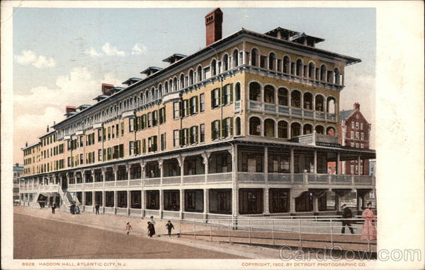 Front: 6928. HADDON HALL, ATLANTIC CITY, N. J. FO DE D OF 1569 186 HADDON HEALES COPYRIGHT, 1902, BY DETROIT PHOTOGRAPHIC CO. Back: 7.00 and Canada, Foreign, Two Cents.