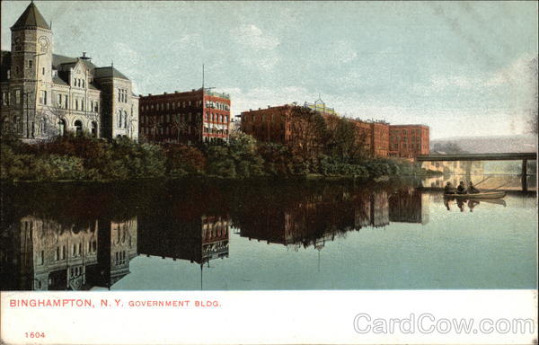 Front: }} BINGHAMPTON, N. Y. GOVERNMENT BLDG. 1604 DIDO ID Back: WDWWGOI PSK Card. 70 1 Cent for States and Canada 2 c. for abroad.