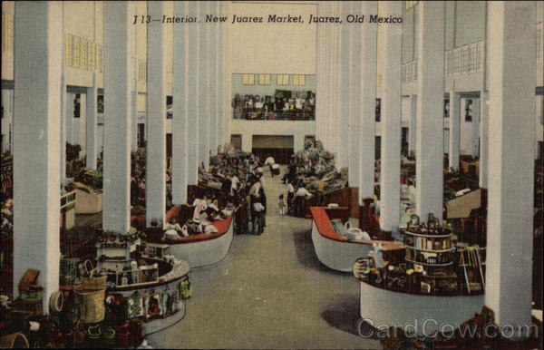 Front: J 13-Interior. New Juarez Market, Juarez, Old Mexico B HI093 Back: SANDOVAL NEWS SERVICE, EL PASO, TEXAS