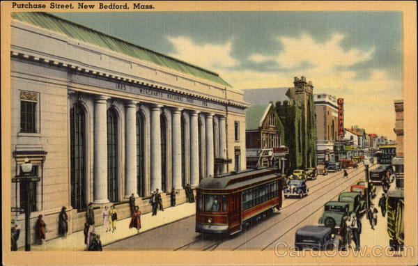 Front: Purchase Street. New Bedford, Mass. WENCHANTS RATIORAL AR ALLE PERF 68412 Back: MADE IN U. S. A PUB. BY BERGER BROS., PROVIDENCE, R. I.