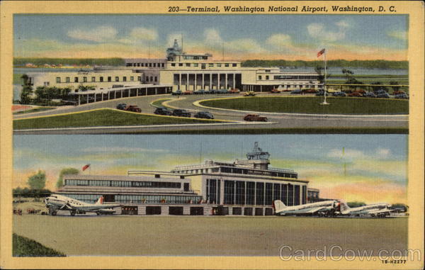 Front: 203-Terminal, Washington National Airport, Washington, D. C. 1B-H2277 Back: SCENIC ART SERIES, B. S. REYNOLDS CO., WASHINGTON, D. C.