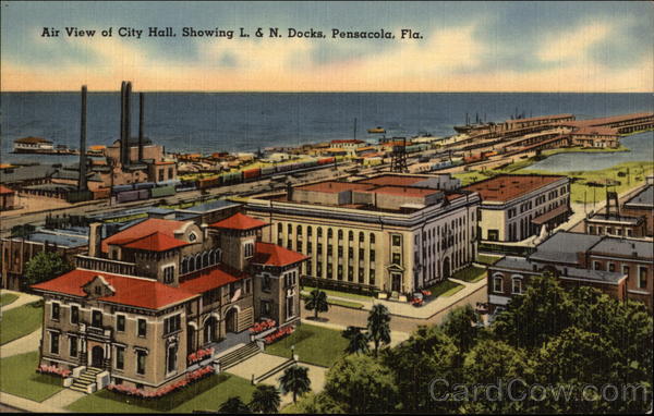 Air View of City Hall, Showing L. & N. Docks, Pensacola, Fla.