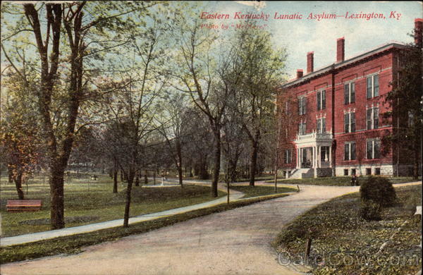 Front: Eastern Kentucky Lunatic Asylum-Lexington, Ky Photo by “Meglare (37 T Back: 22 POST CARE 1912 7W/08 Stny. Miss M. L. Day. oct 22, 1917 ore 741-124 st my dirty at time said hope you are well. you truly. Kathrean Powell,