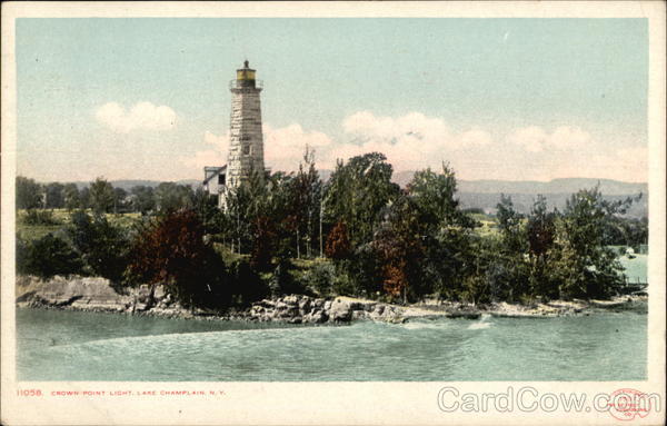 Front: 11058. CROWN POINT LIGHT. LAKE CHAMPLAIN. N. Y. COPYRIGHT 1907. BY DETROIT PUBLISHING CO. Back: MADE ONLY BY DETROIT PUBLISHING CO. "PHOSTINT"CARD. THIS SPACE MAY BE USED FOR MESSAGE, AND CANADA. FOREIGN. TWO CENTS