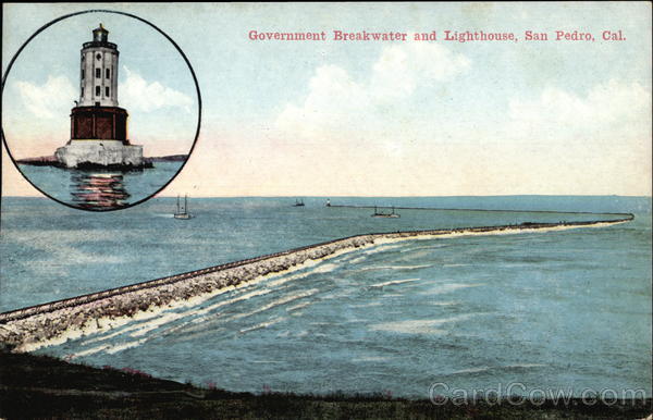 Front: Government Breakwater and Lighthouse, San Pedro, Cal. Back: Published by VAN ORNUM COLOR PRINT CO. Los Angeles.Cal. 479 (NO 3- VO POSSESSIONS1¢ FOREIGN 2¢ THIS SPACE FOR ADDRESS ONLY