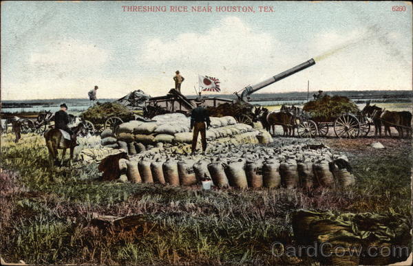 THRESHING RICE NEAR HOUSTON, TEX.