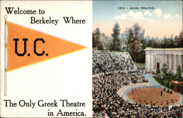 Front: Welcome to Berkeley Where U.C The Only Greek Theatre in America. 1565 GREEK THEATRE. 2367 Back: PUB BY SOUVENIR PUBLISHING CO. SAN FRANCISCO FOREIGN 2ยข THIS SPACE FOR ADDRESS ONLY