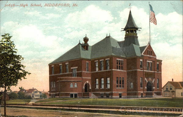 Front: 20656-High School, BIDDEFORD, Me. 88 FEB Back: Souvenir Post Card Co., New York Printed in Germany. TWO CENTS