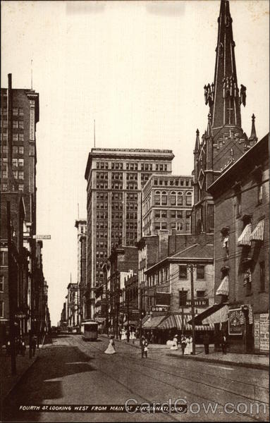 Front: KYKLARA* ***** LFAN FAD 01 DOW'S FOURTH ST. LOOKING WEST FROM MAIN ST CINCINNATI, OHIO. KO BER 38* 288922%24 Back: The Norwood Souvenir Co, Cincinnati, O. HERE