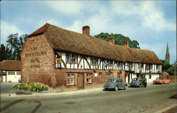 Front: CAR PARK ROSE & CROWN USHERS 6021 Back: The Rose and Crawn Hotel, Harnham, Salisbury, Wilts. A Watney Mann Hotel L1/SP. 1221 J.ARTHUR DIXON A DIXON-LOTUS PRODUCTION LTD A POST OFFICE PREFERRED SIZE