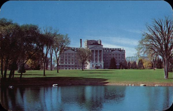 Physicians' Hospital Plattsburg, N. Y. Pub. by Pierson Studio, Lake Placid, N. Y. 152-D-36 54160 Dextone Made Direct from Kodachrome and Ansco Color By Dexter Press, Pearl River, N. Y. HERE