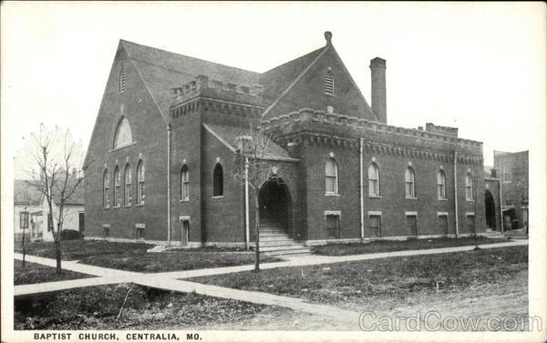 Front: 2322 110 BAPTIST CHURCH, CENTRALIA, MO. WIT stra OPEE wwww Jinnatuimaalam SLEE Back: 41742 BLACK AND WHITE HERE