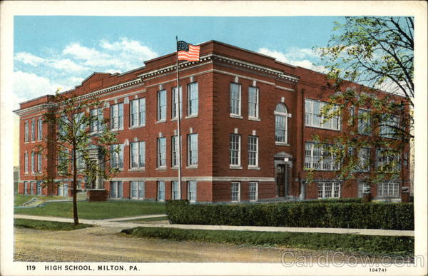 Front: 119 HIGH SCHOOL, MILTON, PA. 104741 Back: PUBLISHED BY W. A. REED ESTATE, MILTON, PA. CHI C. T. AMERICAN ART COLORED LUS GOO HERE