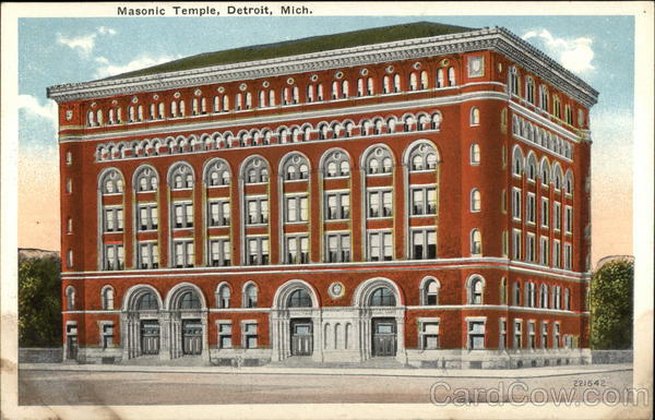 Front: Masonic Temple, Detroit, Mich. ONE TOALE ME TEPLE AA FF AGOMIC TEMPE O O ASONN TERNE hodow PART M M DDDD F F FARE 221542 Back: RD³ 21-23/2 Place the Stamphere and Island Possessions Cuba,Canada and for foreign