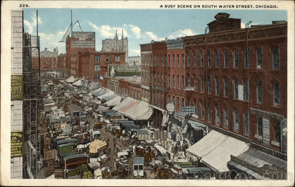 A BUSY SCENE ON SOUTH WATER STREET, CHICAGO.