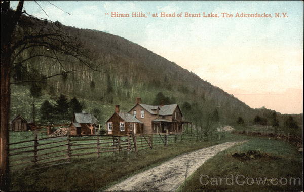 Front: Hiram Hills," at Head of Brant Lake, The Adirondacks, N.Y. 402,386 Back: Published by C. W. Hughes, Mechanicville, N.Y. SOUVENIR POST GARD 9