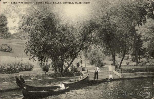 Front: 869 LAKE WASHINGTON, DENNY BLAINE PARK, SEATTLE, WASHINGTON. Back: Post Card- EDWARD H. MITCHELL, PUBLISHER, SAN FRANCISCO. THIS SPACE FOR ADDRESS ONLY