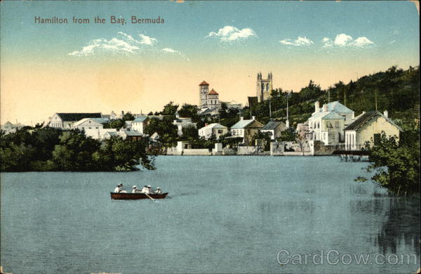 Front: Hamilton from the Bay, Bermuda Back: Published by Wm. Weiss & Co., Photographers and Kodak dealers, Hamilton. No. 170 25 Sept 1985 Ray R. Examen BERMUDA Stamp. APEL CARD