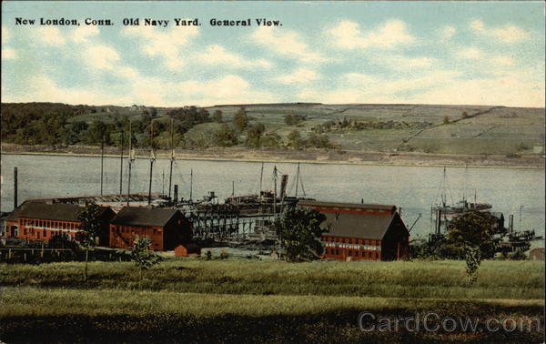 Front: New London, Conn. Old Navy Yard. General View. AND MACHINE SHOP Back: THE HUGH C. LEIGHTON CO., MANUFACTURERS, PORTLAND, ME, U. S. A. L554 QUALITY MESSAGE MAY BE WRITTEN ON THIS SIDE. and Island Possessions Cuba, Canada and For Foreign.