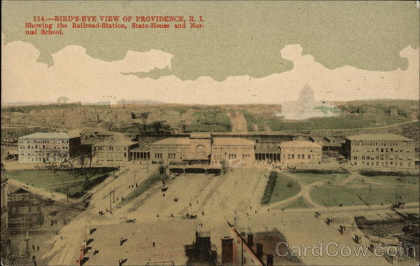 Front: 114.-BIRD'S-EYE VIEW OF PROVIDENCE, R. I. Showing the Railroad-Station, State-House and Nor- mal School. BY SHOES MA HANLEY'S PEERLESS ALE ECOFO Life Back: Published by R. WILKINSON, 55 Eddy St., Providence, R. I. 491 7.00