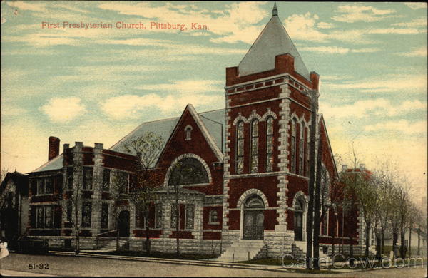 Front: First Presbyterian Church, Pittsburg, Kan. 51-92 CHURCH Z Back: PUBLISHED FOR S. H. KRESS & Co. 1,00 THIS SPACE MAY BE USED FOR MESSAGE 508 FOREIGN- THIS SPACE FOR THE ADDRESS