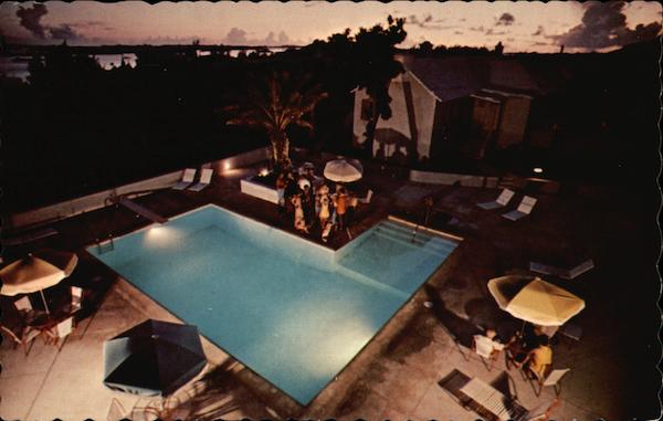 View Of Swimming Pool At Sunset: Rosemont Guest House, Rosemont Avenue, Pembroke, Bermuda. 67178-C dp Pub. by Bermuda Drug Co., Ltd., Hamilton, Bermuda Bermuda DEXTER PRESS, INC. WEST NYACK, NEW YORK "'LOCATION FILE DO NOT REMOVE"