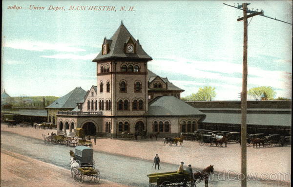 Front: 20890--Union Depot, MANCHESTER, N. H. BRENNE en 19 20 정 Back: Souvenir Post Card Co., New York Printed in Germany. TWO CENTS