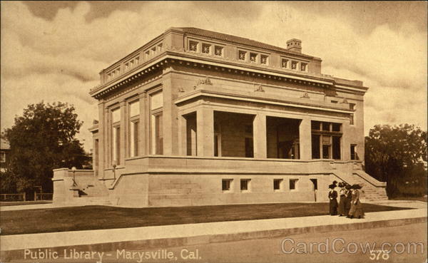 Front: X X X Public Library - Marysville, Cal. Tr 578 Back: ON THE ROAD OF A THOUSAND WONDERS PUBLISHED BY EDWARD H. MITCHELL SAN FRANCISCO CAL. >1¢ 2¢
