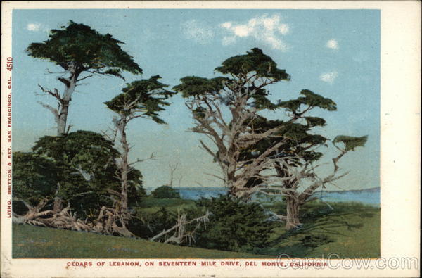 Front: LITHO. BRITTON & REY. SAN FRANCISCO, CAL. 4510 ****** CEDARS OF LEBANON, ON SEVENTEEN MILE DRIVE, DEL MONTE, CALIFORNIA Back: Wont Post Gard THIS SPACE IS FOR THE ADDRESS ONLY