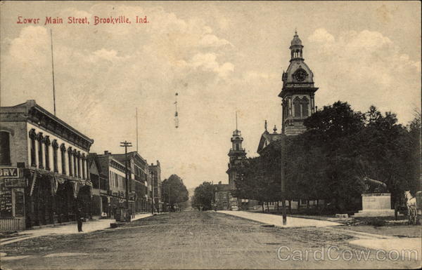 Front: RY. RB2 BOS SERT WINTA Lower Main Street, Brookville, Ind. UNG KUTTER DOLS Back: Pub. by Kirby C. Meyers, Brookville, Ind. (3) A 12 573 #3.00 891 Two cents