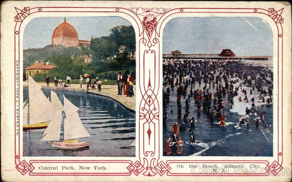 Front: COPYRIGHT 1909 J. I. AUSTEN CO. 4111 Central Park, New York. HE On the Beach, Atlantic City, N. J. Back: 100 1c here U. S. and 2c Foreign