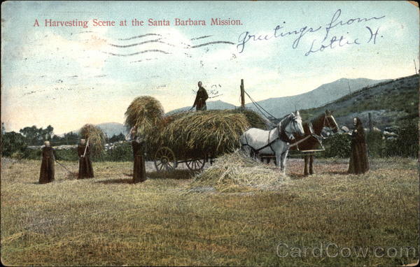 A Harvesting Scene at the Santa Barbara Mission.