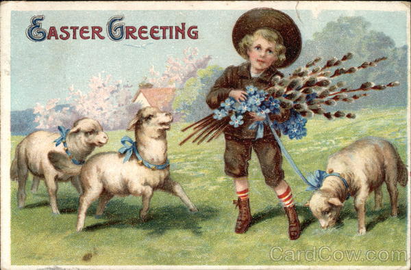 Front: EASTER GREETING SE Back: WRITE HERE Lister Perez 5 PM Warren 6. Pinection жен Mears. POS AGE endall.