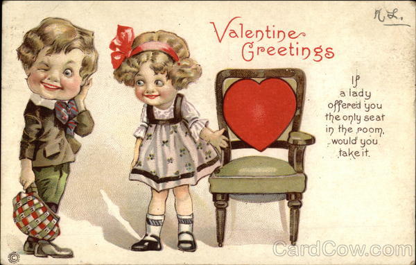 Front: STECHE ROCK ww. TO Valentine Greetings 00 A.L. If a lady offered you the only seat in the room. would you take it. Back: St. L. Series 635 A FAYE OFEB 6 PZ 11922 U.S.POSTACE ettil Mr. Robert Better. Auburn Alabawa