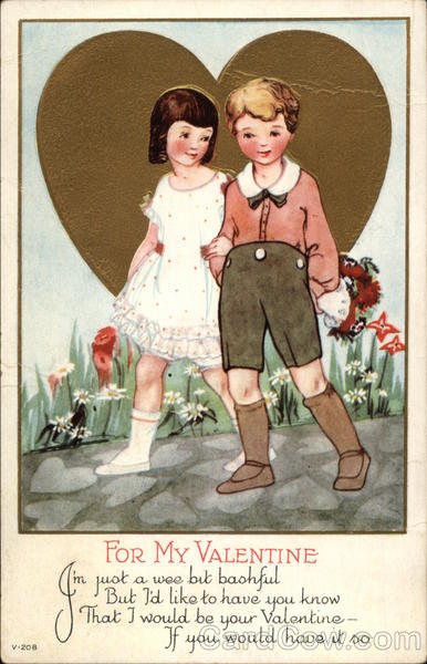 Front: V-208 I'm just FOR MY VALENTINE a wee bit bashful But I'd like to have you know That I would be your Valentine would have it so If you Back: -PM 1724 Mr. Robert Betts Auburn Alabama CIENTY
