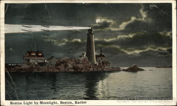 Boston Light by Moonlight, Boston, Harbor