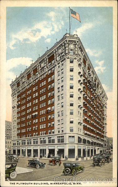Front: 199» m a Di PP PF ER FRA it _ _ } } ܐ ܐ ܠܐ ܕܘ ܝܘ ܘ ܒ ܪܗ ##=a TI OV WW FR PE CER 37 THE PLYMOUTH BUILDING, MINNEAPOLIS, MINN. CED Back: Quality Line Bloom Bros.Co. Minneapolis A-70758 AND CANADA. TWO CENTS.