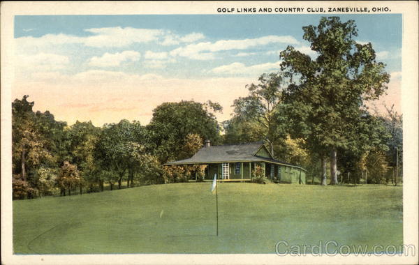 Front: GOLF LINKS AND COUNTRY CLUB, ZANESVILLE, OHIO. T Back: PITTSBURGH PUBLISHED BY 1, ROBBINS & SON, PITTSBURGH, PA. & Son) PA FOR WRITING MESSAGES. Randson A-65746 STAMP HERE