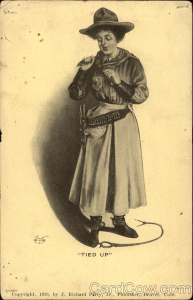 Front: Limfo "TIED UP" Copyright, 1910, by J. Richard Parry, Jr., Publisher, Denver, Colo. Back: PARR Con untumattom Cow-Boy Cow-GIRL. of IN REPOSE .t HERE