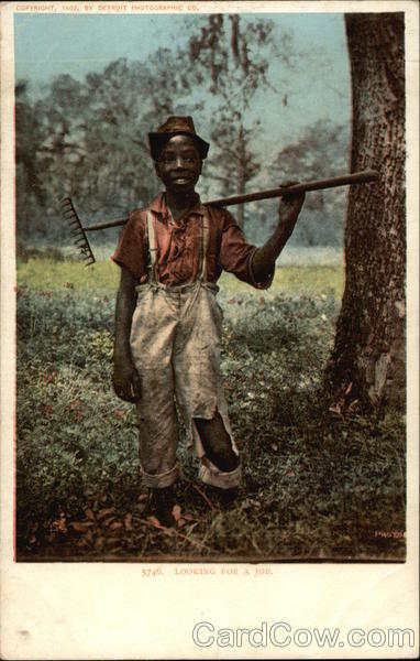 Front: COPYRIGHT, 1902, BY DETROIT PHOTOGRAPHIC CO. 5746. LOOKING FOR A JOB. PHOTOG Back: AND CANADA, FOREIGN, Two CENTS.