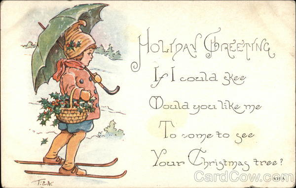 Front: TEN DI теби HOLIDAN SPREENING If I could kee Dould you like me To to Your Christmas come tree? 431 A Back: THIS SPACE FOR COMMUNICATION سیلاب Missibodus Merry Christmas Your Friend Bof 9. F. A. OWEN CO DANSVILLE N Jerizek Poolge