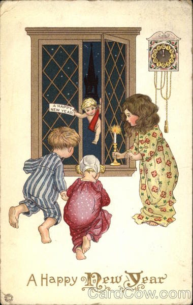 Front: CHER POCH A HAPPY NEW YEAR A Happy New Year 2 Back: MISDIRECT a Bright and Вијер to Happy New Year all. gelene ใน Marten. J30PM 1911 C.SPOS R.R.M.2. Miss Glorence Kelly Villige Cuck, Dons.