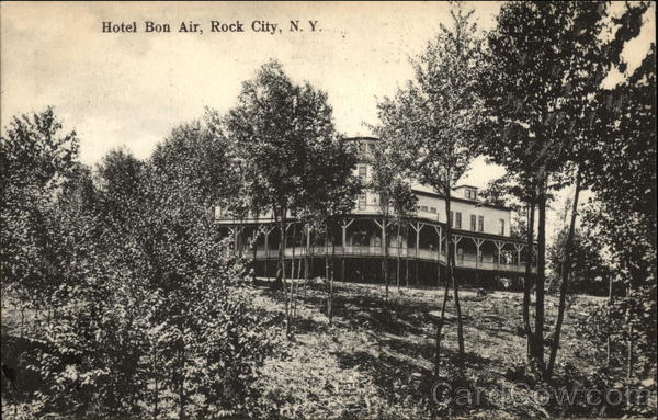Front: Hotel Bon Air, Rock City, N. Y. Back: 2 mank 1988 Ragtime OS CARD. JUL 9 1-30P 19 06 PA.. UNITED STATES OF AMERICA Tull 1706 FRANKLIN 1790 ONE CERT Miso Gertrude Eugle No Clarendon ра PRINTED IN GERMANY