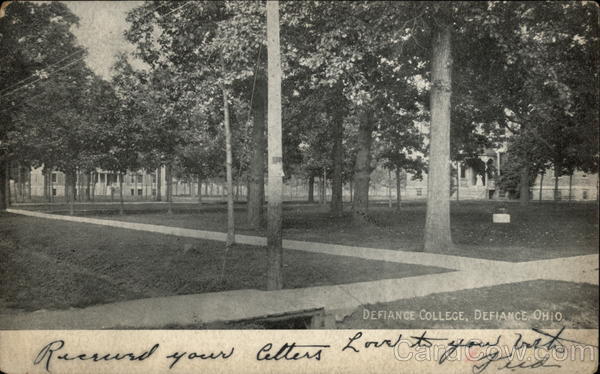 Front: Record your Cetters DEFIANCE COLLEGE, DEFIANCE, Ohio. Love to your ad vert کس Back: 62 MARC POST 30P CARD 07 Bowler Hall 1902 UNITED STATES OF 1706 FRANKLIN 1790 Mis That M. Jamenworth ни Heramen Thin