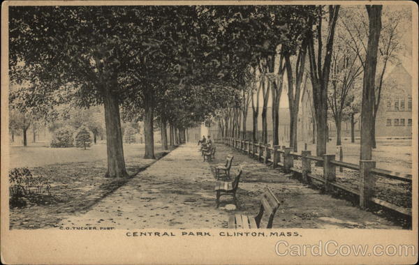 Front: C.O.TUCKER. PURT CENTRAL PARK. CLINTON. MASS. 2 Back: Will rite you soon hope you are well blinton Domestic 1 Ct. Foreign 2 Cts. i THE ALBERTYPE CO.! BROOKLYN, N.Y.