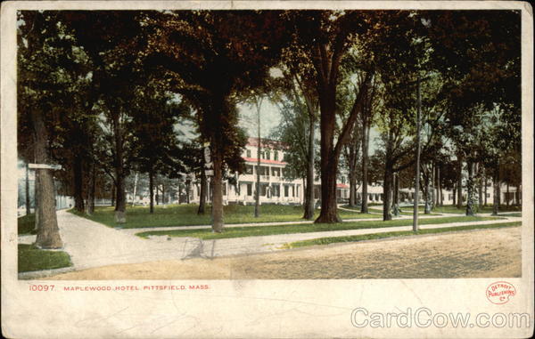 Front: 10097. MAPLEWOOD HOTEL, PITTSFIELD. MASS. DETROIT PUBLISHING Co Back: 22 1250 AND CANADA. MISS TO ZRIBIB Miss ZELB/B BL 4.712 WEST MINSTER STLOUIS мо FOREIGN. TWO الى