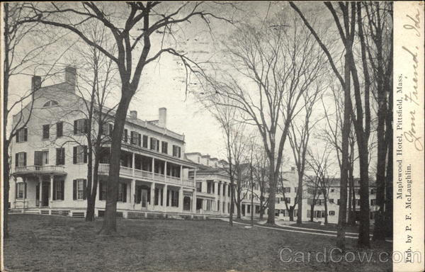 Front: Maplewood Hotel, Pittsfield, Mass. Pub. by P. F. McLaughlin. Your Friend. Ida. Back: ISFIELD OCT 20 11-30A 05 PIT CCT 20 19 Minn Minnie Rick AME 1706 FRANKLIN 1790 323 Washington love, Albany N. N.J THIS SIDE FOR ADDRESS ONLY.